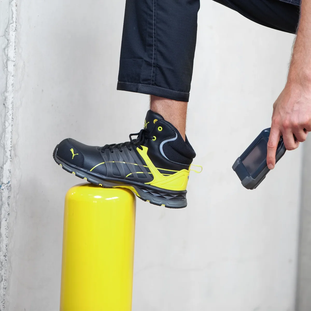 Bota de seguridad tipo borceguí con puntera de protección (PP) de fibra de vidrio. 189;192;186 Motion Protect VELOCITY 2.0 combina rendimiento liviano, protección y comodidad para largas jornadas de trabajo. Atributos: Alta resistencia al desgarre, con aplicaciones de poliuretano termoplástico que ofrece una excelente adaptación al pie y favorece la transpiración. Su puntera de protección está diseñada para dar más espacio a los dedos de los pies, es antimagnética y térmicamente aislante. Suela con sistema de control de torsión, entre-suela con tecnología antifatiga, IMPULSE.FOAM, que ofrece una amortiguación óptima.