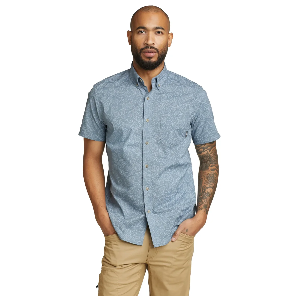 El algodón ligero y preencogido es muy transpirable para brindar la máxima comodidad en climas cálidos. Los estampados y estampados originales crean un estilo casual.